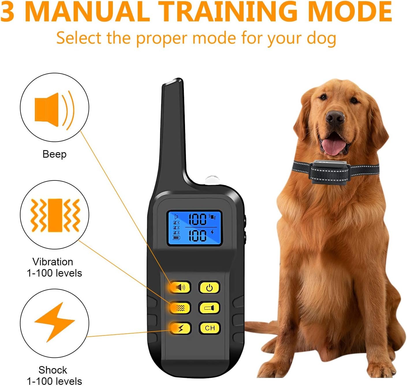 Petrainer 617A Dog Training Collar with Remote Waterproof and Rechargerable Electric Collar with Beep Vibrating for Dogs,1000ft/ 330yards Range