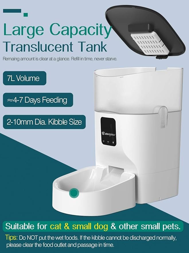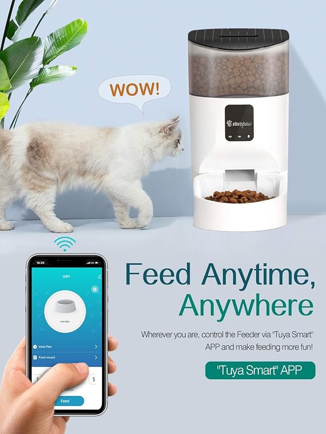 7L Automatic Cat Feeder, WiFi Enabled Smart Food Dispenser for Cats, Dogs & Small Pets with APP Control, Programmable Timer, Voice Recorder and Portion Control Up to 10 Meals per Day, White