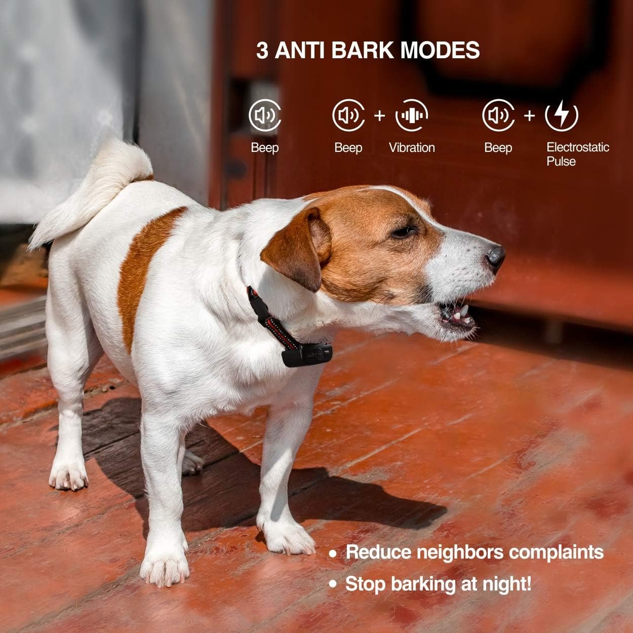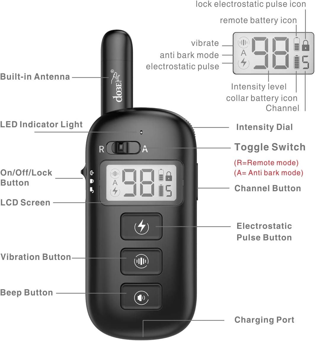 2. Includes one anti bark collar, Remote Transmitter can control up to 5 collars.
