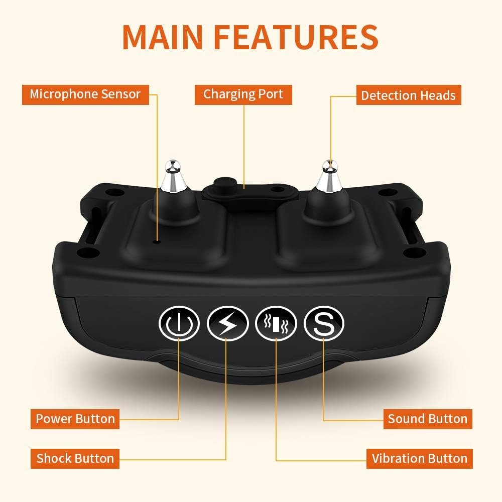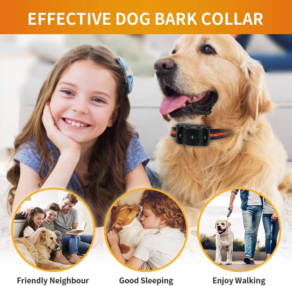 3 Effect Modes Electronic dog bark collar provides 3 extremely efficient and safe training modes (beep, vibration and shock modes) for you to solve an uncontrollable dog’s barking problems. This collar also gives you an option to set among 8 sensitivity levels.