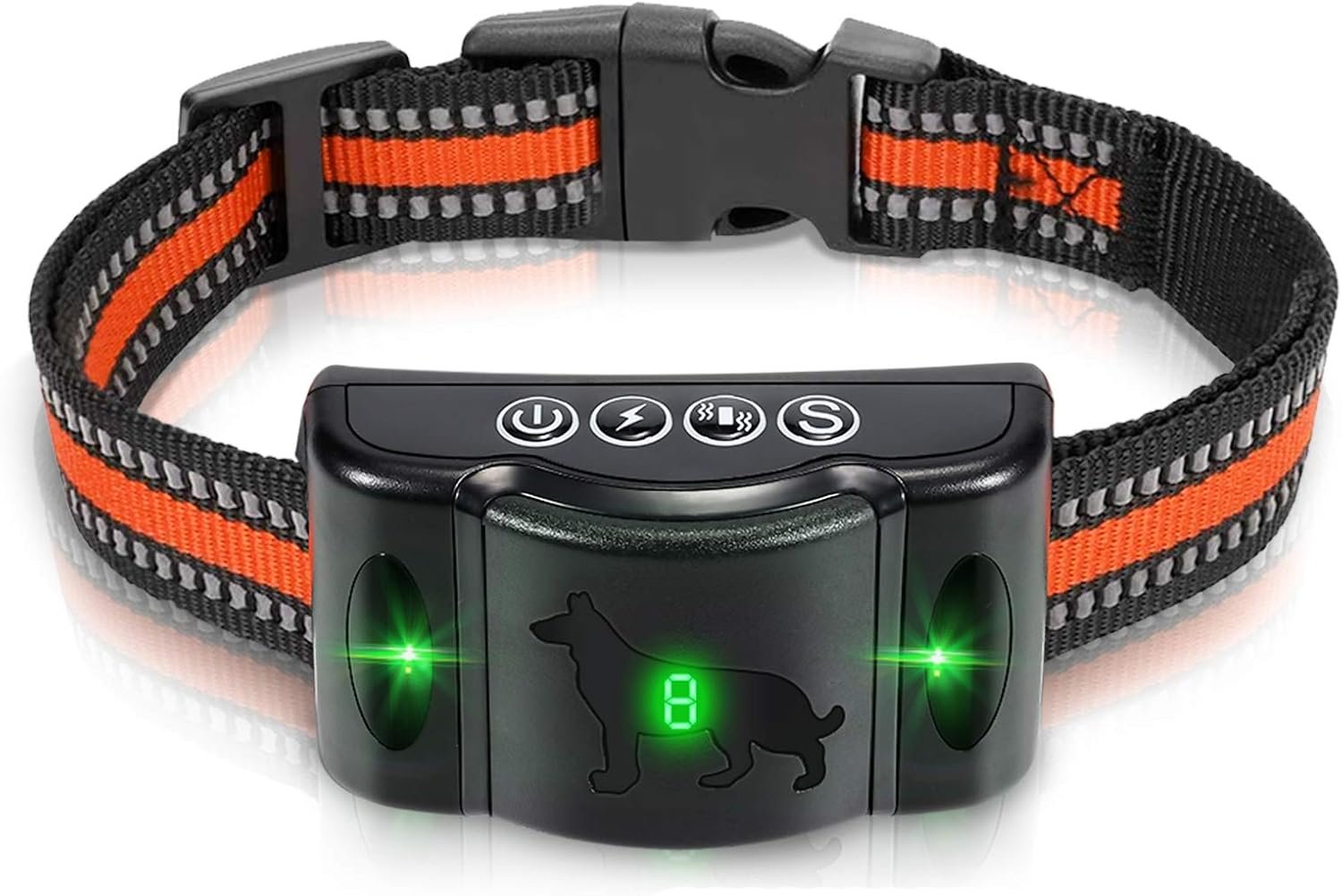Dog Bark Collar Rechargeable Dog Barking Control Training Collar with LED 3 Training Mode Sound Vibration & Shock-8 Adjustable Sensitivity Levels Waterproof Pet Collar for Big Dogs