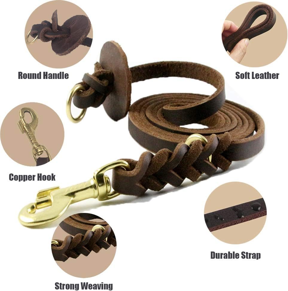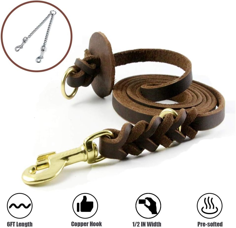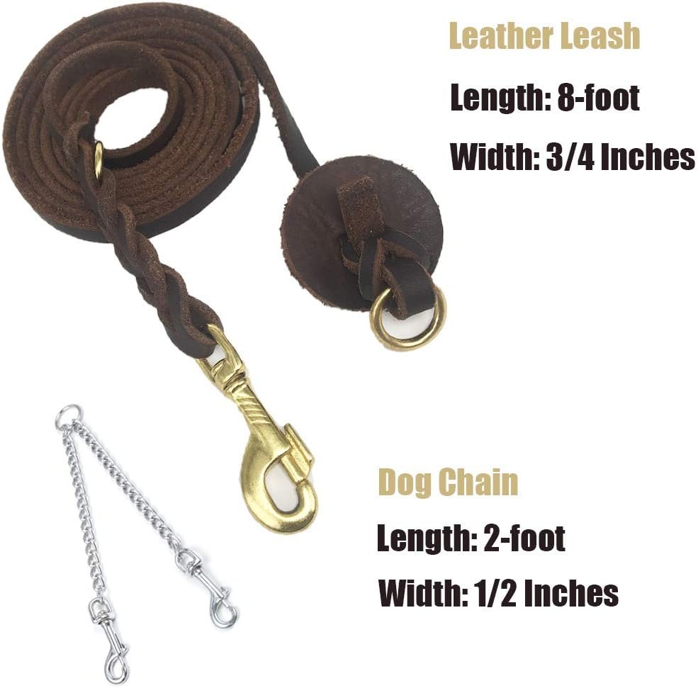 / Petek Non-Handle Dog Leather Leash 7.2 ft|0.5in|0.5in|Pre-softened with Bonus of Multi-Using Chain and Copper Hook Training Heavy Duty Braided Leash Gift for Large Medium Puppy Dog