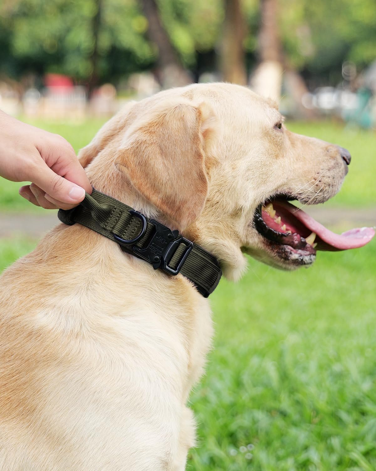 TACTICAL Dog Collar for Large Dogs Military Heavy Duty Dog Collars for Large Dogs Pitbull Collar German Shepherd Collar Dark green (XL)